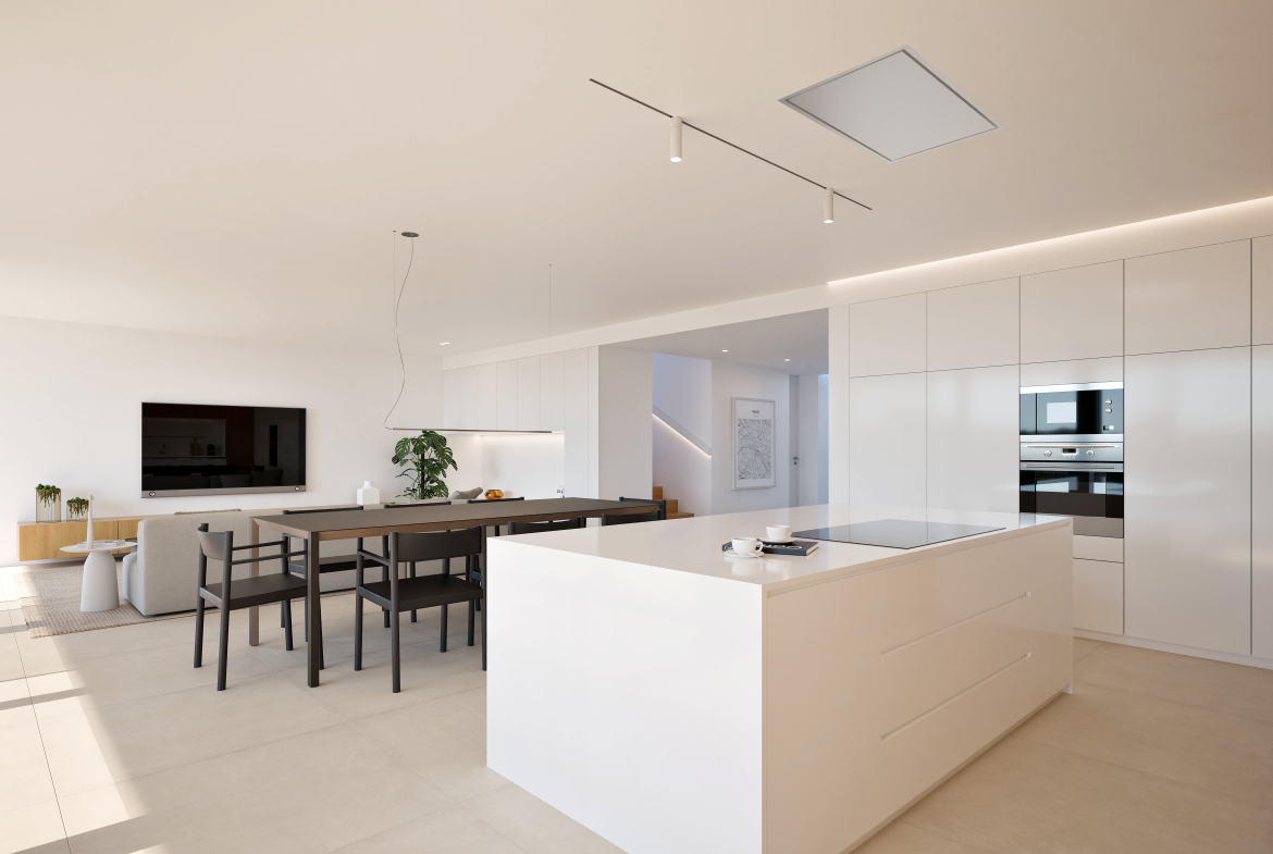 The ground floor welcomes you with a generous living room, a spacious open kitchen, a convenient laundry room, and a guest bathroom. A stylish staircase and lift provide access to the first floor. This level hosts four luxurious suites and an office. Three bedrooms open onto a large terrace with breathtaking ocean views, while the office and fourth bedroom each have a private balcony with sea views.